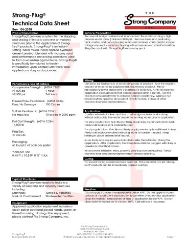 Specifically formulated to withstand freeze/thaw cycles, corrosive chemicals, and sulfate-rich conditions, Strong-Plug® is perfect for maintaining the structural integrity of manholes and wastewater facilities. Easy to mix and apply, either as a slurry or dry powder, this versatile product offers consistent performance and significant cost savings by reducing the need for frequent maintenance. Strong-Plug® is the go-to choice for municipalities and contractors looking for a reliable, efficient solution to restore and protect essential infrastructure.