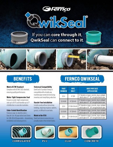QwikSeal by Fernco is a groundbreaking solution for tapping into new, existing, and rehabilitated sanitary and storm lines with minimal excavation, saving time and reducing hassle. This product not only simplifies the installation process but also minimizes inventory needs by connecting with virtually any pipe material. Its versatile lineup accommodates concrete, clay, and solid-wall plastic pipes, ensuring reliable performance in any situation.
